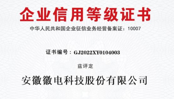 • 徽電科技榮獲“AAA級企業信用等級”認證